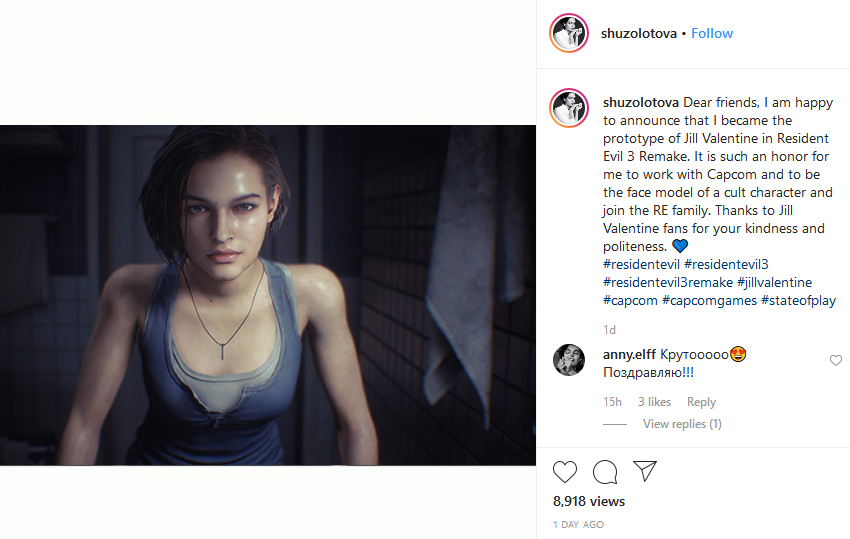 The Resident Evil 3 Jill Face Model Is Sasha Zotova